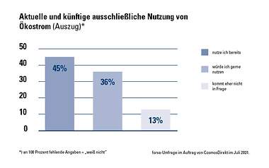 Fast jeder Zweite zwischen 20 und 50 Jahren in Deutschland nutzt bereits heute ausschließlich Ökostrom