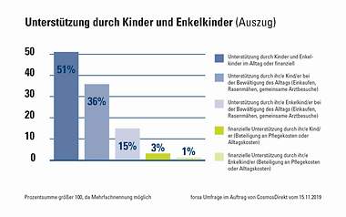 - 51 Prozent der Großeltern sagen, dass sie durch ihre Kinder oder Enkelkinder im Alltag oder finanziell unterstützt werden.