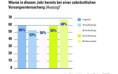 - Von den 18- bis 29-Jährigen waren nur 53 Prozent bereits bei der Zahnvorsorge.1