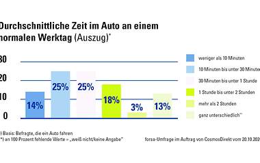Bevölkerungsrepräsentative Umfrage „Neue Mobilität“ des Meinungsforschungsinstituts forsa im Auftrag von CosmosDirekt, dem Direktversicherer der Generali in Deutschland. Im Oktober 2020 wurden 1.393 Autofahrer in Deutschland befragt.
